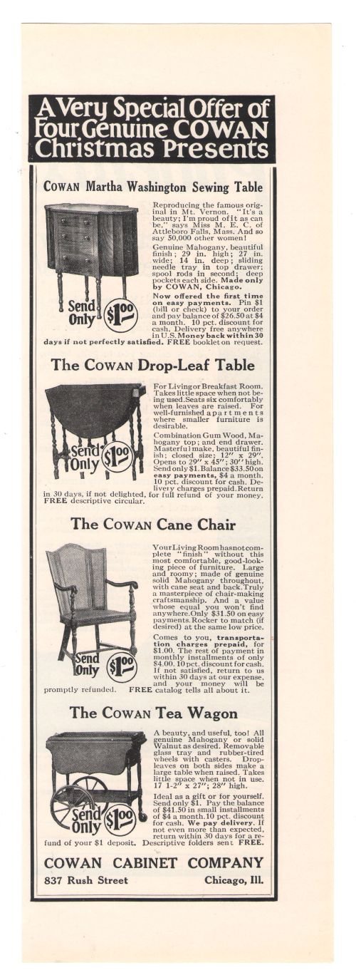 Furniture ARE YOU INTEREST sFcimens. A large number are suitable for wed. ding or Christmas gifts. We invite inspection and comparison. W. R. Cowan Company North State and Ontario Sts. JOHN A COLBY & SONS FURNITURE.. . FITTINGS. work Chicago artists to be held at the Institute some time this ... Fetch Content